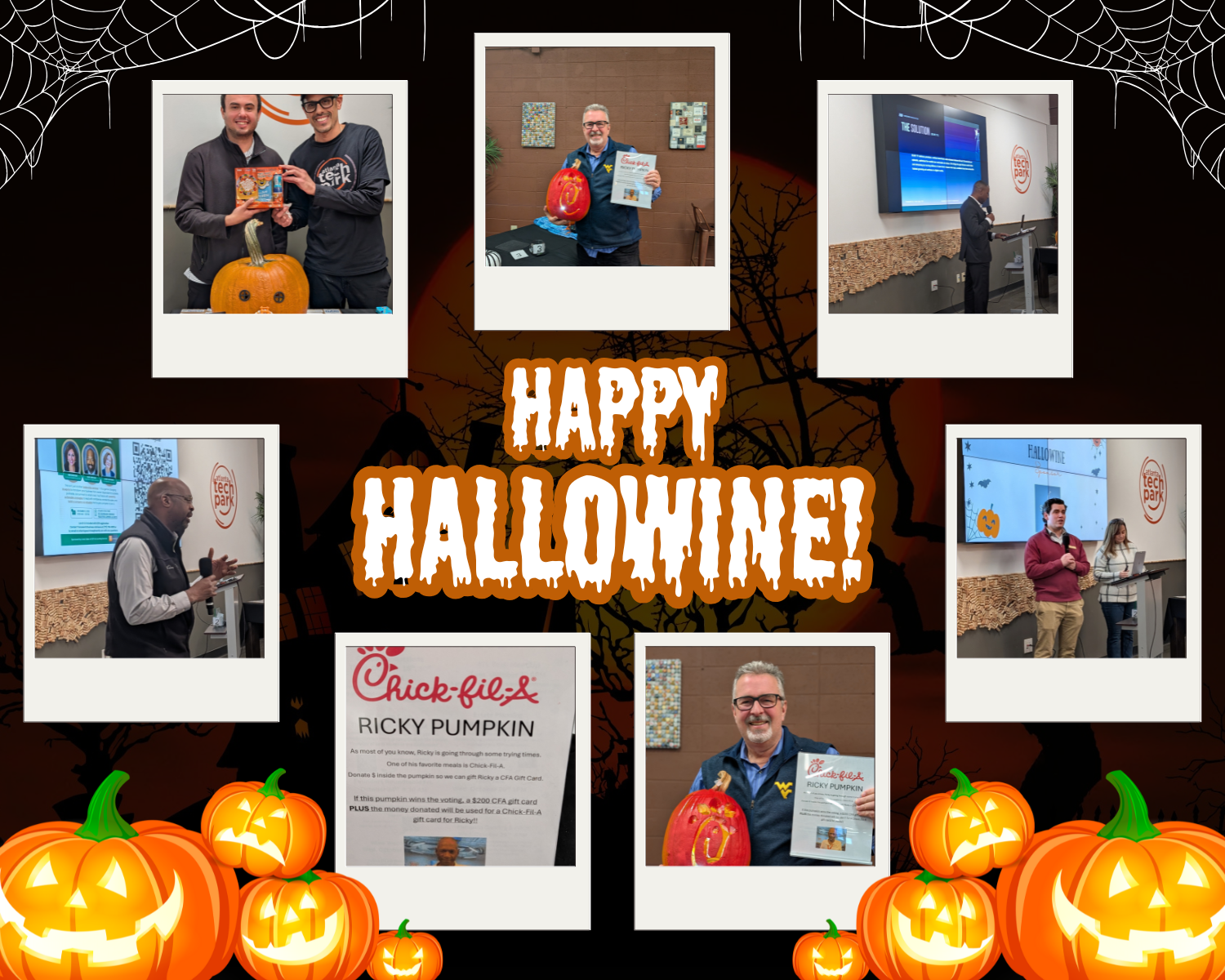For the last Wine Wednesday of the year, we mix it up a bit with a pumpkin carving contest and pitch night! Our winner this year made the Ricky Pumpkin with funds raised to help our dear friend, Ricky as he continues to battle cancer.